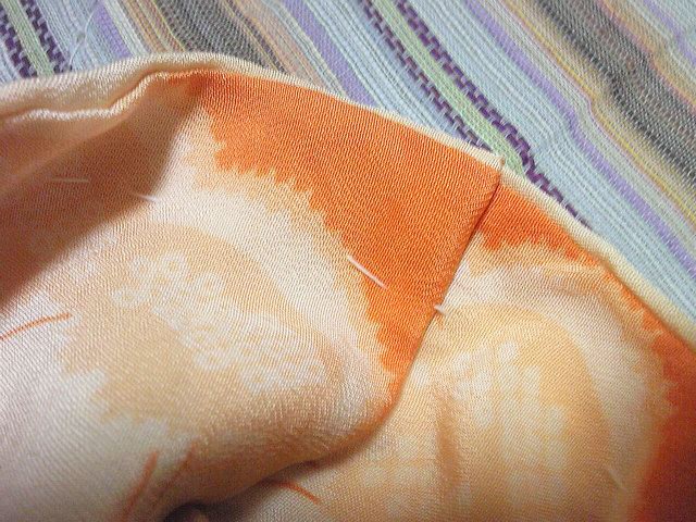 裏地を付けると言ったものの、無双袖は裏も共布で、中を覗いても同じ生地です(ちょっとつまらない)。