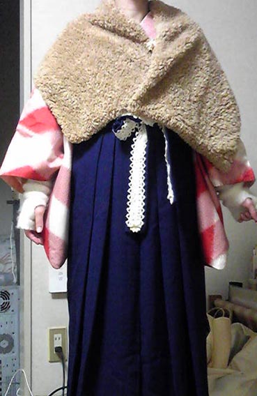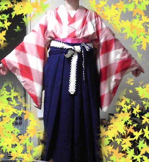 ありがとうございます!本日発送しますね!っていうかそれは「お雑煮の代わりにぜんざいを食べた」以外の何者でもないと思います!(笑)・・・・・・・・・・・・・・・発送してきました(笑)到着をお待ちください~。 さて、レポの続きですけど、本当にもう書くことがないので、当日の着物のことに。 いや本当に時間は(特にお昼頃まで)あっという間だったし、宅急便はSing2さんのカートのお世話になって楽々かつ待ち時間も少なかったし、アフターは友人とふたりだったしで、ええ、本当に特に。 ただ、いただいたものはすごかった! しかしてすごいと申し上げたのは、下敷きになってる黒地にバラ模様のやつ。 実は着物ですΣ(°Д°; 勝手に着物仲間認定中のうましかさんが、小さいからとくださったんですが、帰って羽織ってみたら、サイズ十分で、恥ずかしいぐらい安いからなんておっしゃってましたが、このレベルならあっさりそれを信じる訳にはいくまいという感じでもうなんとお礼を申し上げてよいのやら。 しかもその右。解りますか? 念のために更にアップ。 ちょ、うましかさん凄すぎる・・・・!というのも、半襟に至っては、血印マークがなんと刺繍(笑) 位置的にはちょうど衣紋のところにきます。覗き込まれれば見える絶妙な血印位置(笑) 鎧様の血印って、衣紋というよりは背中の紋あたりかもしれませんが、さすがにそこまでは(笑)と思うので、半襟でベストです。使いたいと思います!(笑) のわこさんのスペースにはいつも鎧の頭帽がおいてあるんですが、その横に並べて飾っておりました。 さて、後は私の着物ですが、まあ袴なのでざくっと簡単に。 端切れ何百円とかのレベルだったのに、これ掛けてると実は結構ぬくいんです。 下は天然素材で空気を取り込んであっためて、ポリエステルは風を通さないので、一番上に着るといいって本当だなあと思います。 更に防寒としてのわこさんにいただいたアームウォーマー。 五号館自体もぬくかったんだと思うんですが、この時期なのに、ι(´Д`υ)アツィーって言ってました(笑) ちょっと背景見苦しいので加工してあります。 長着はダイヤチェックの銘仙。いつもの袴。みなせっちに誕生日にともらった乙女飾り(こっちの紹介はまた後日!) 本当は伊達襟を入れるつもりで、白の(膨れ織の)半襟にしてたんですが、どうにも綺麗に入らなくて、着終わってから抜いたので、襟自体がぐずぐずでした・・・・。あと袴なのにちょっと衣紋抜きすぎて、それを直したせいもあるかな。 しかし袴はやっぱり動きやすいです。トイレは地味に大変ですけど。 PR