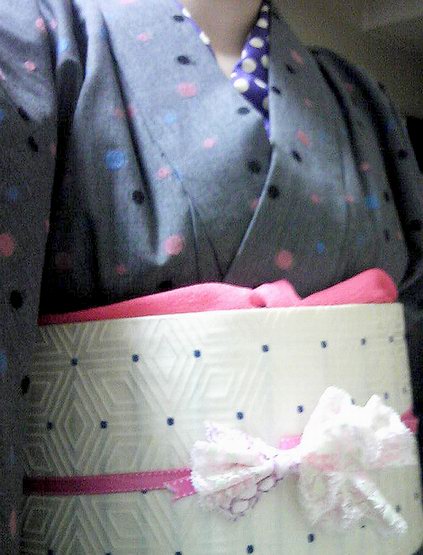 作り帯なので、腹回りが一重になるので、これも季節の割に暑い時向けなのです。